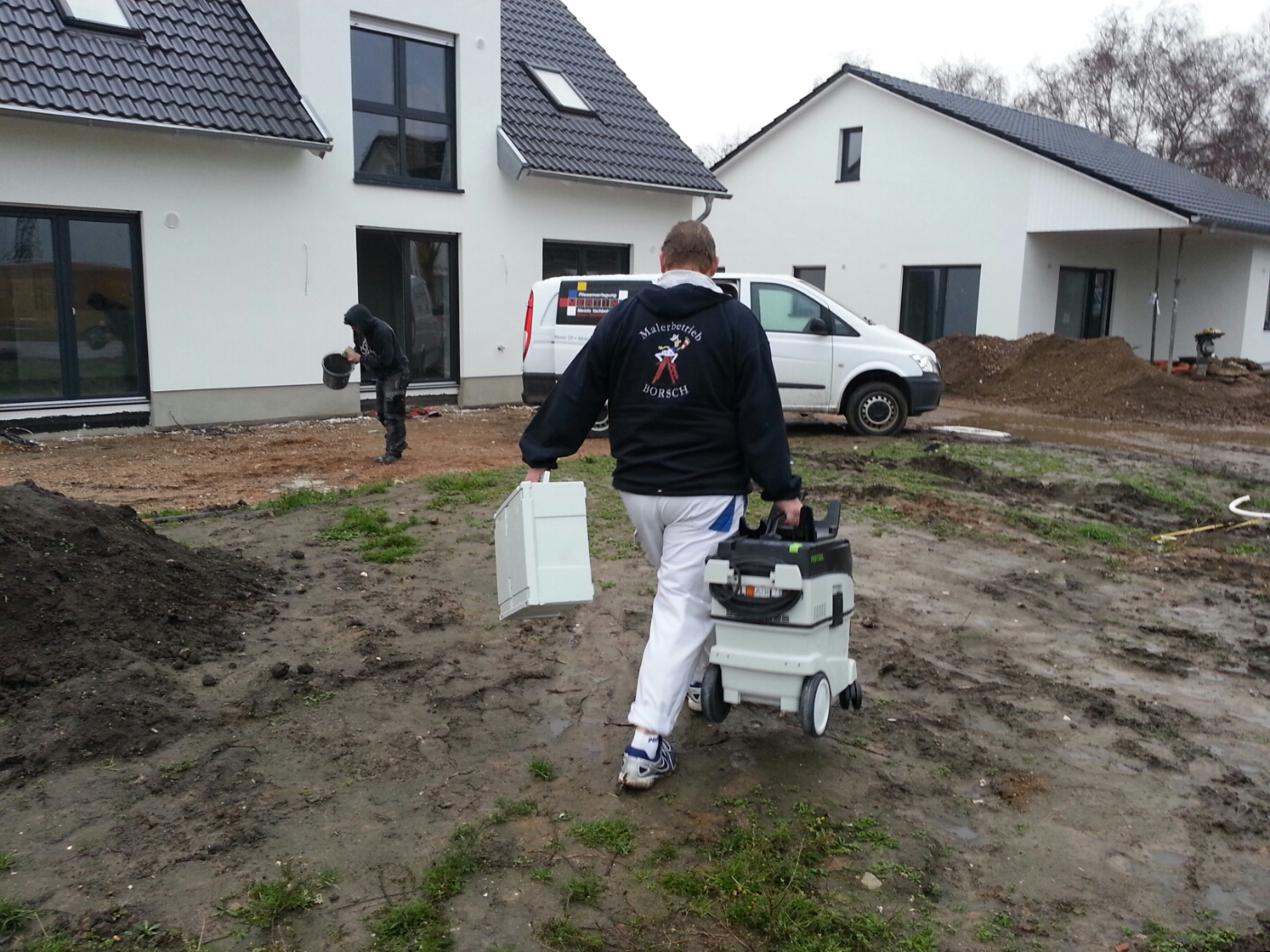 Hoffentlich sieht es hier anders aus wenn die Auftragggeber, noch vor Weihnachten einziehen werden. Sonst sind diese kaum zu beneiden, bei dem Matsch vor der Tür.