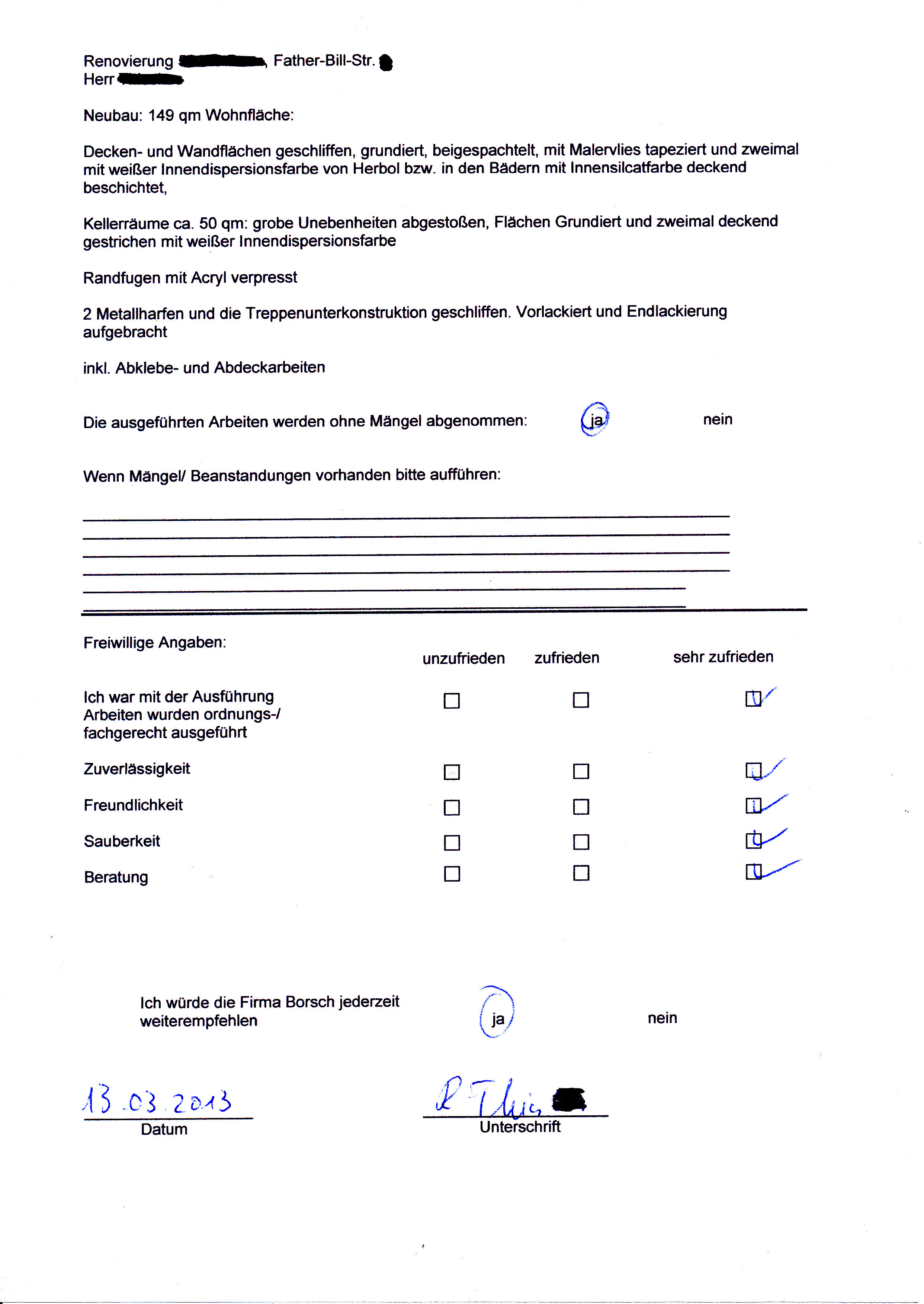 Erst dann, wenn der Kunde sehr zufrieden ist, sind die Arbeiten für uns abgeschlossen.