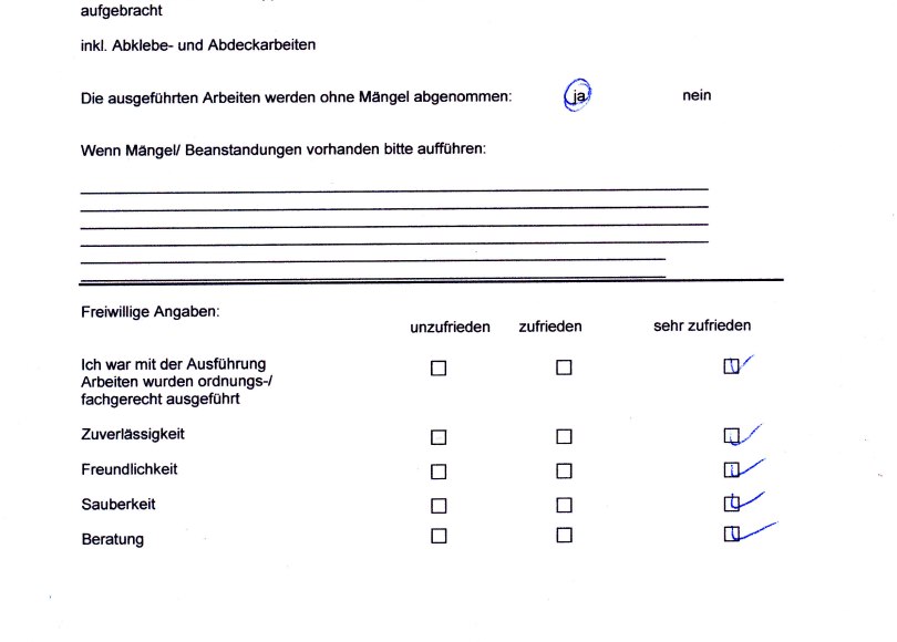 Vielleicht sollten wir für die Zukunft noch einen weiteren Punkt aufführen, nämlich das wir bei der Arbeit und in Zusammenarbeit mit den verschiedenen anderen Gewerken mitdenken und den Kunden entsprechend darauf aufmerksam machen.